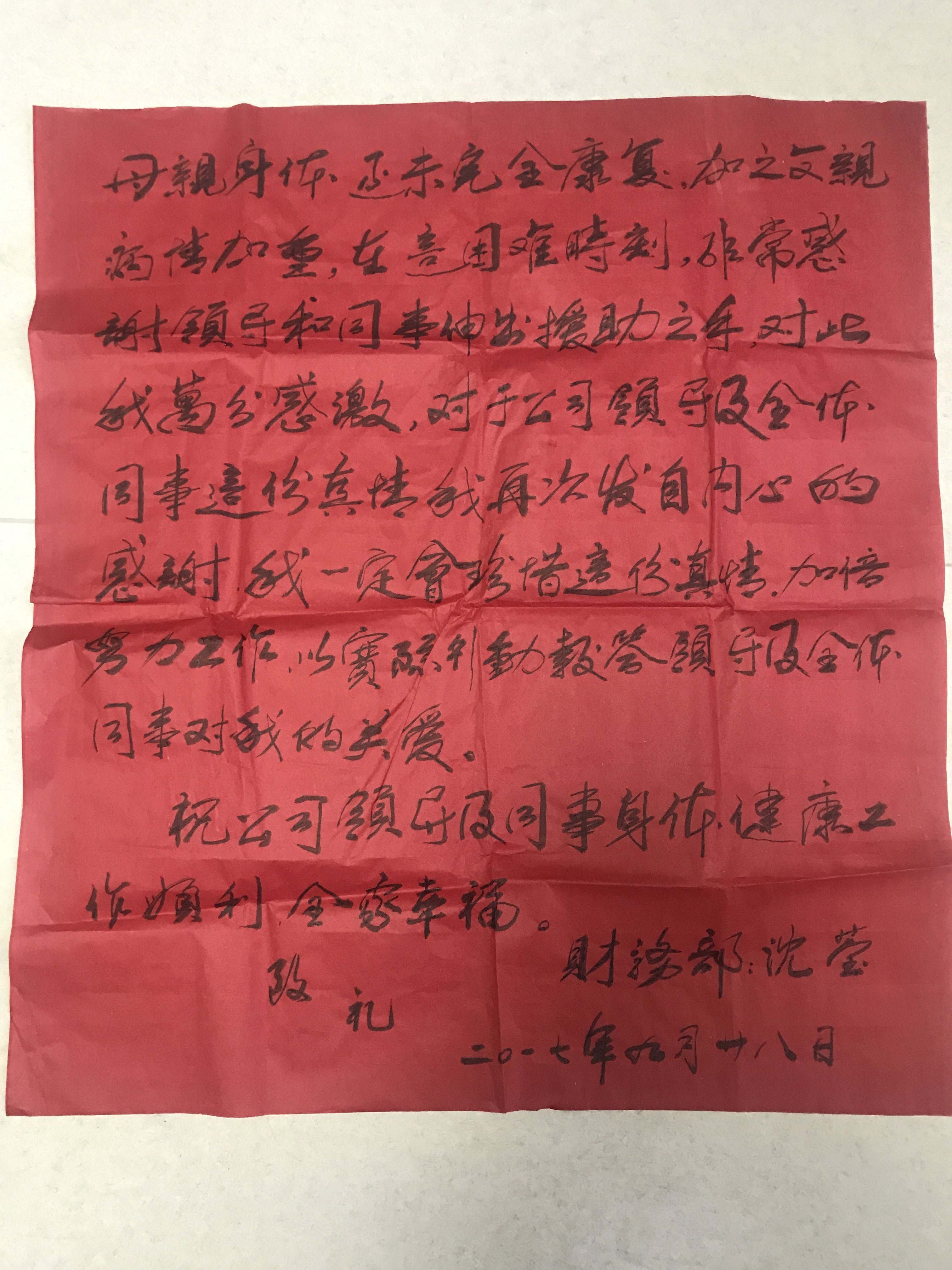 大愛無疆,真情永在,公司黨委、工會得知此事后,迅速發(fā)出愛心捐助倡議書,號召公司全體職工為沈瑩捐款,幫助她走出困境。倡議一經(jīng)發(fā)出,立即得到了大家的積極響應,紛紛伸出援助之手,一個星期內(nèi),就收到愛心善款70000余元。