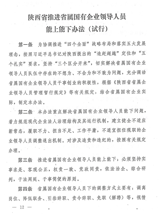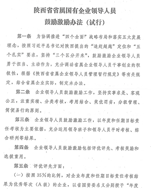 陜西省省屬國有企業領導人員鼓勵激勵、容錯糾錯、能上能下辦法