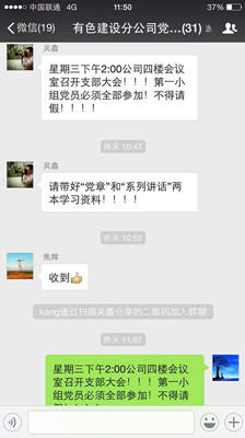 由于支部內(nèi)黨員大部分為施工一線基層黨員,區(qū)域分布較為分散且有幾位跨省黨員等實(shí)際情況,為滿足公司生產(chǎn)經(jīng)營工作,大力助推“兩學(xué)一做“學(xué)習(xí)教育深入開展,分公司黨支部充分利用互聯(lián)網(wǎng)+的思維模式,發(fā)揮微信群的優(yōu)勢,建立了黨員交流微信群,以微課堂的模式形成線上線下互動(dòng)學(xué)習(xí)的模式。