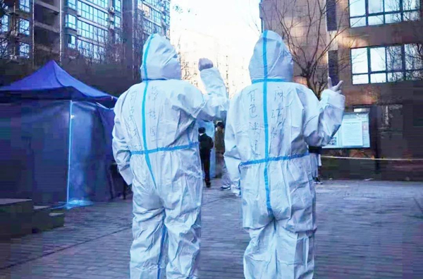 其實志愿工作并不難,主要是在核酸檢測時負責掃碼,或是配合醫(yī)護人員進行消殺。但恰恰是這些簡單的工作卻容不得一點疏漏。防護服是我們重要的防護物資,為節(jié)約資源,一旦穿上防護服就不能隨便脫下來,不能吃喝,手腳在寒風中凍得冰涼僵硬,但是總有一股子強烈的責任感和使命感支撐著我,使我在志愿者工作的道路上步伐堅定。